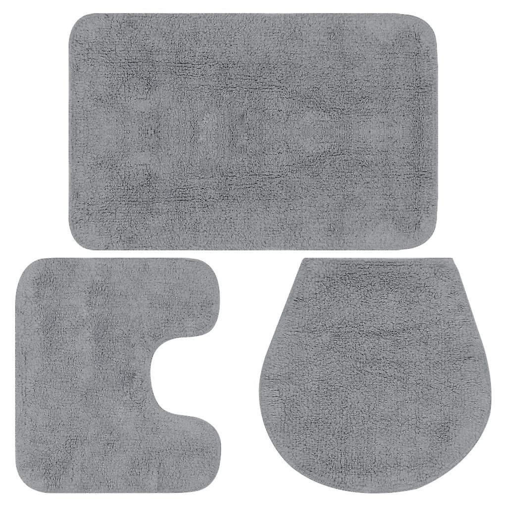 Unsere Badematten verleihen Ihrer Badezimmereinrichtung einen luxuriösen Look. Da es aus Baumwolle zu 100 % besteht, ist das Mattenset sowohl antistatisch als auch saugfähig und pflegeleicht. Dank rutschfester Unterseite bleibt die Bodenmatte ohne Verrutschen sicher am Platz, um Sicherheit beim Heraussteigen aus der Badewanne zu bieten. Die Klosettumrahmung sorgt zudem für Wärme und Komfort. Im Lieferumfang sind 1 Badematte, 1 Klosettumrahmung und 1 Abdeckung für den Toilettendeckel enthalten. Hinweis: Unsere Teppiche werden für den einfacheren Transport gerollt verpackt. Geben Sie dem Produkt nach dem Auspacken und Entrollen etwas Zeit, bis es wieder schön flach und glatt auf dem Boden liegt. Farbe: GrauMaterial: 100% BaumwolleGröße Badematte: 50 x 78 cm (B x L)Größe Klosettumrahmung: 50 x 50 cm (B x L)Größe Toilettendeckel-Abdeckung: 44 x 50 cm (B x L)Angenehm weich anzufassenAntistatisch und saugfähigMit rutschfester UnterseitePflegeleichtLieferung umfasst 1 Badematte, 1 Klosettumrahmung und 1 Abdeckung für den ToilettendeckelMaterial: Baumwolle: 100%