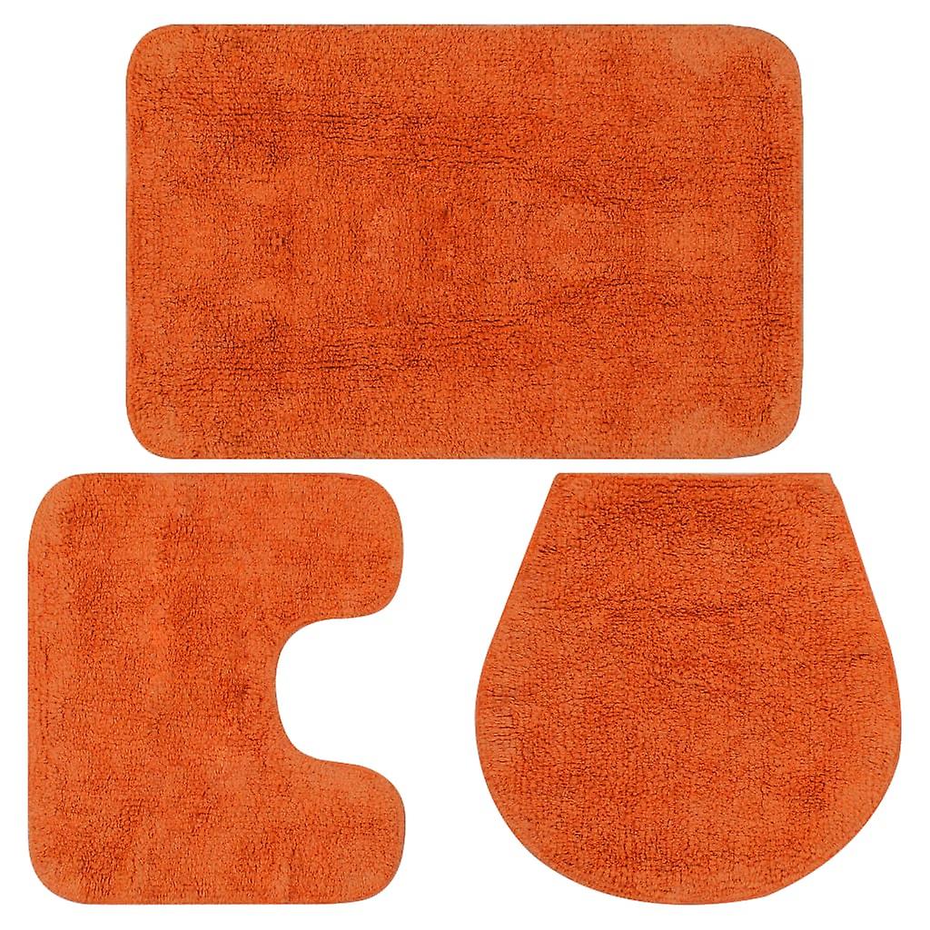 Unsere Badematten verleihen Ihrer Badezimmereinrichtung einen luxuriösen Look. Da es aus Baumwolle zu 100 % besteht, ist das Mattenset sowohl antistatisch als auch saugfähig und pflegeleicht. Dank rutschfester Unterseite bleibt die Bodenmatte ohne Verrutschen sicher am Platz, um Sicherheit beim Heraussteigen aus der Badewanne zu bieten. Die Klosettumrahmung sorgt zudem für Wärme und Komfort. Im Lieferumfang sind 1 Badematte, 1 Klosettumrahmung und 1 Abdeckung für den Toilettendeckel enthalten. Hinweis: Unsere Teppiche werden für den einfacheren Transport gerollt verpackt. Geben Sie dem Produkt nach dem Auspacken und Entrollen etwas Zeit, bis es wieder schön flach und glatt auf dem Boden liegt. Farbe: OrangeMaterial: 100% BaumwolleGröße Badematte: 50 x 78 cm (B x L)Größe Klosettumrahmung: 50 x 50 cm (B x L)Größe Toilettendeckel-Abdeckung: 44 x 50 cm (B x L)Angenehm weich anzufassenAntistatisch und saugfähigMit rutschfester UnterseitePflegeleichtLieferung umfasst 1 Badematte, 1 Klosettumrahmung und 1 Abdeckung für den ToilettendeckelMaterial: Baumwolle: 100%