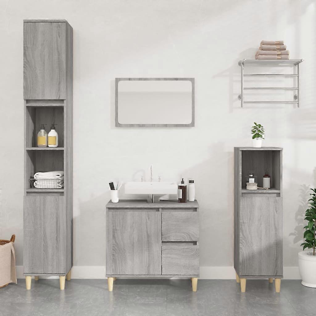 Badschrank Grau Sonoma 30x30x100 cm Holzwerkstoff