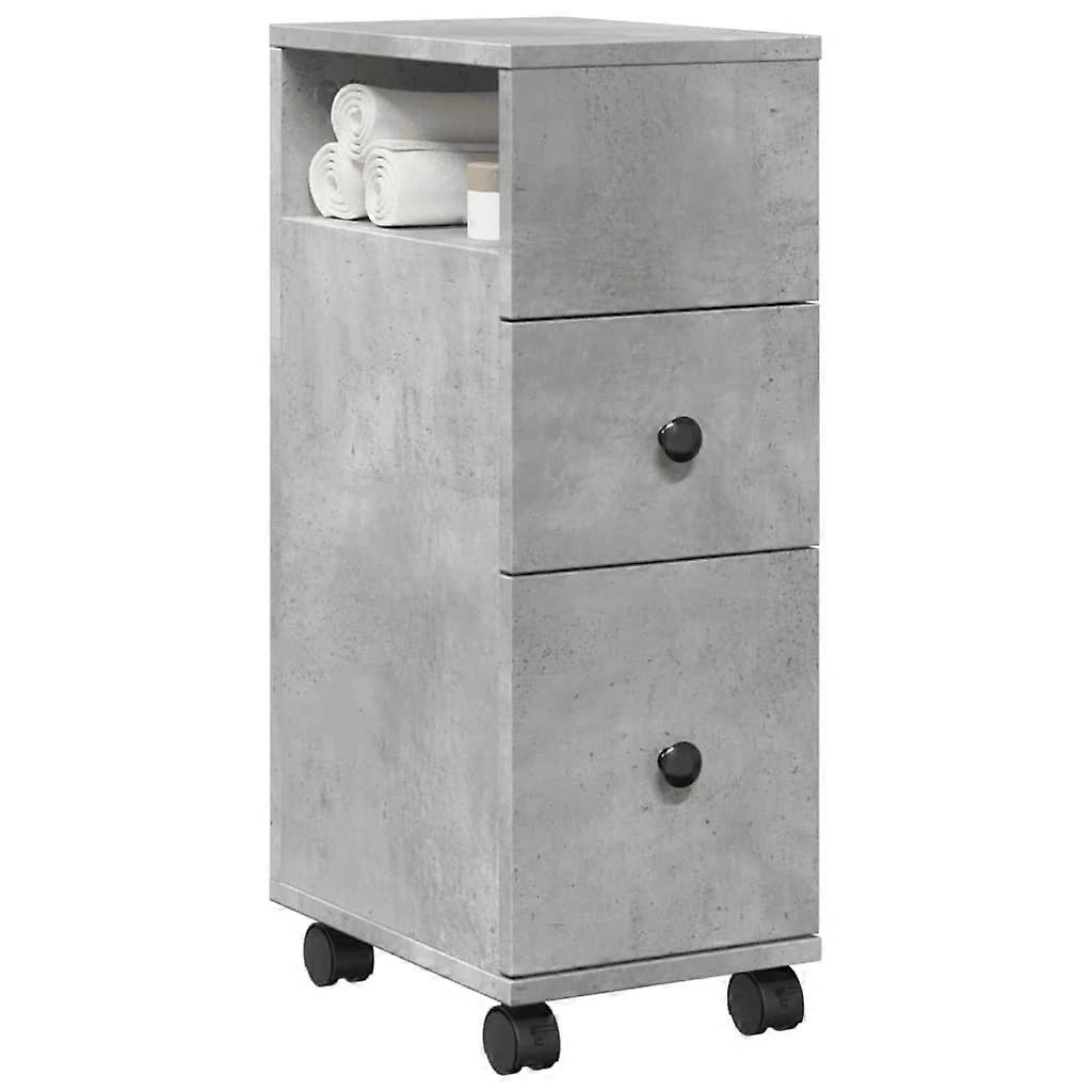 Badschrank Schmal mit Rollen Betongrau Holzwerkstoff