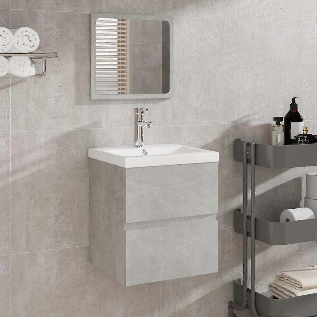Badschrank mit Spiegel Betongrau Holzwerkstoff