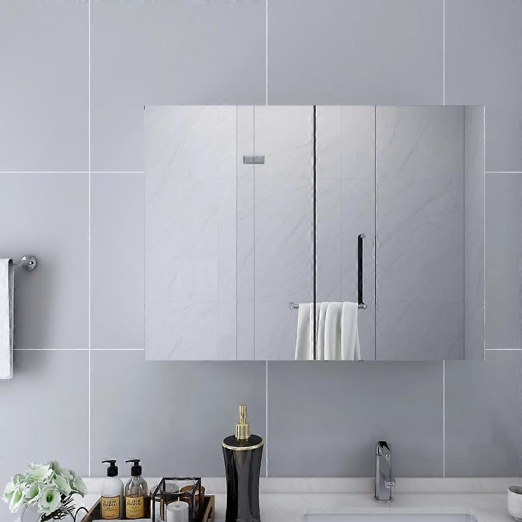 Der Wand-Spiegelschrank ist aus MDF mit Melaminoberfläche und Glas gefertigt, wodurch er langlebig und stabil ist. Der Schrank verfügt über 2 Türen und insgesamt 3 Fächer, die genügend Stauraum bieten. In ihnen lassen sich die wichtigsten Toilettenartikel und Badartikel wie Seife, Shampoo, Zahnpasta usw. problemlos unterbringen. Zusätzlich gibt es zwei bewegliche Trennwände in der Mitte des Schrankes. Du kannst es je nach deinem tatsächlichen Bedarf installieren. Dieser stilvolle und funktionale Schrank sorgt für eine authentische und herausragende Raumgestaltung