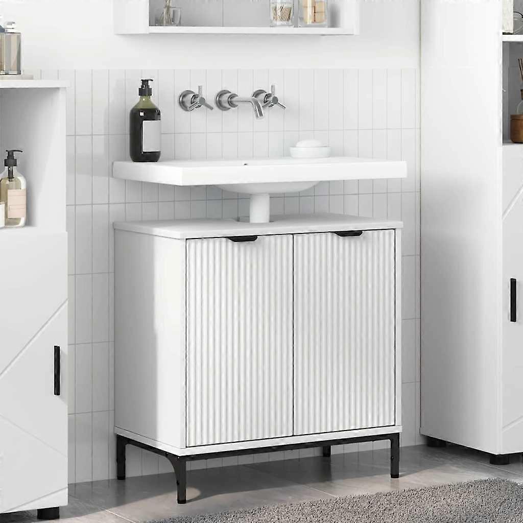 Badezimmer Waschbecken Schrank mit Tür Weiß 60,5 x 33,5 x 61 cm