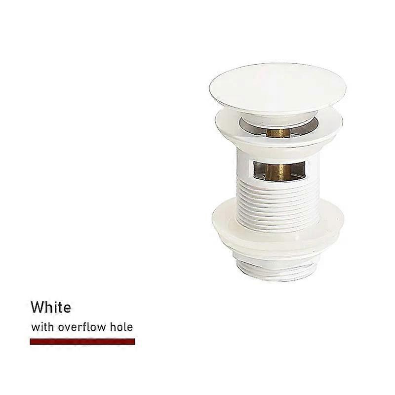 Bathroom Sink Pop Up Drain Stopper Brushed Gold, Matte Black, White, Rose Gold,. Introducing Our Versatile Basin Drain, Designed for Both Style and Function in Your Bathroom. Crafted from Durable Brass, This Pop-up Drain Ensures Longevity and Reliability. Its Gravity Flushing Feature Delivers Efficient Drainage, While the Push-down Pop-up Style Offers Convenience and a Sleek Look. Available in a Variety of Stunning Finishes, Including Brushed Gold, Chrome, Matt Black, Dark Gold, Light Gold, White, Antique, Rose Gold, Brushed Nickel, Gunmetal, and ORB, You Can Easily Match This Drain to Your Bathroom Decor. Choose Between Options with or Without an Overflow Hole to Perfectly Suit Your Needs. Features: - Application: Basin - Material: Brass - Size: 2.6 Inch - Style: Push Down Pop-Up - Surface Treatment: Chrome Plated - Color Options: Brushed Gold, Chrome, Matt Black, Dark Gold, Light Gold, White, Antique, Rose Gold, Brushed Nickel, Gunmetal, ORB - Type: Drains - Overflow Options: With or Without Overflow Hole.