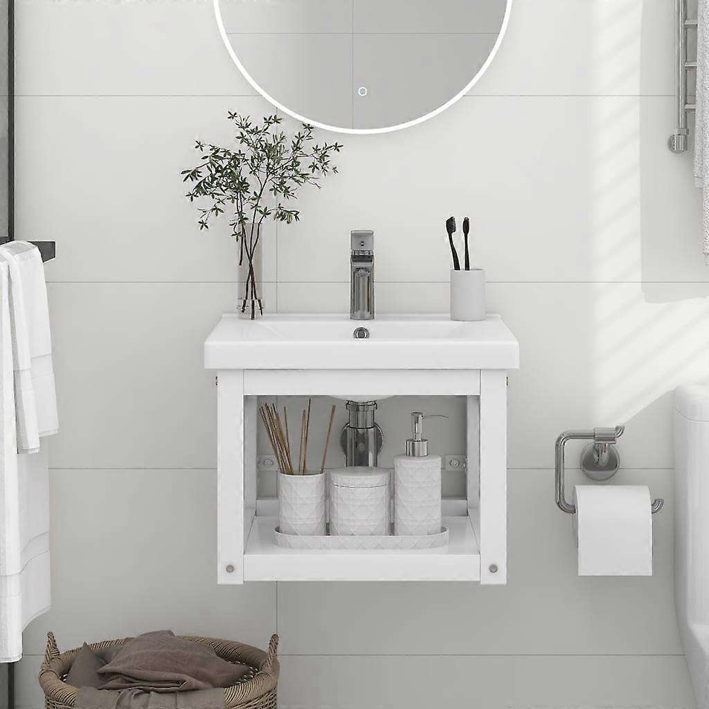 Badezimmer Wand-Waschtischgestell Weiß 40x38x31 cm Eisen