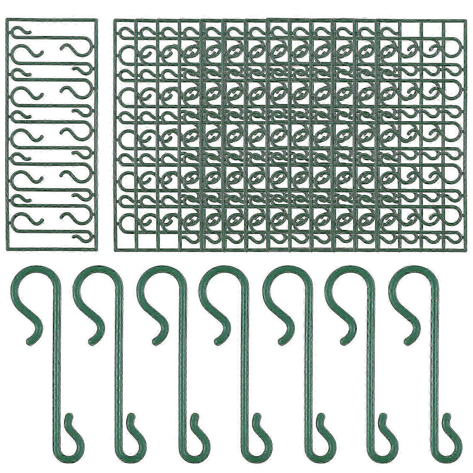 This item is a set of Christmas tree ornament hanging hooks. Adopted of premium PVC material, the hook is practical and . Not easy to deform. Green color easily makes it totally the Christmas tree and Christmas vines. Fit for hanging Christmas ball, wreath, vine or other ornaments as you like on the Christmas tree to light up festive atmosphere.Features- Brand: Supvox.- - Material: PVC.- Size: Approx. 11.50X4.50X0.30cm/4.52X1.77X0.12inch.- Made of quality plastic, these hooks are practical, sturdy, reusable and .- Every 10 pieces Christmas ornament mini hanging hooks come in a row (connected to each other) to avoid disorganizing or tangling together, which need to be removed by hand before use.- Christmas ornament hangers is in design, simple and portable, very useful gadgets for hanging your baubles, saving lot of space.- Two ends of the hooks are in different sizes, more convenient to use, not easily deformed, have the same color as the Christmas tree to bring invisibility effect.- Suitable for hanging ornaments on Christmas trees, such as Christmas present bags, Christmas balls, wreath, vine, etc. Package list: Supvox Hooks