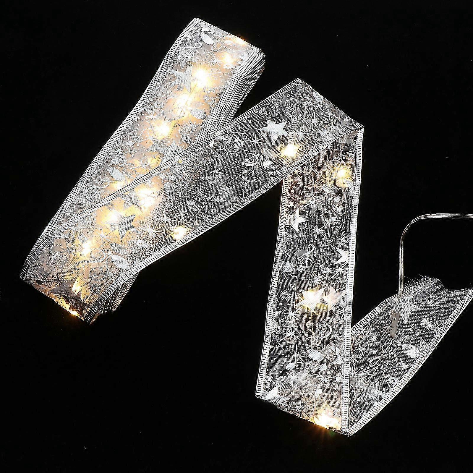 Bauble Hanging Ribbon Diy Craft Ribbon Lawn Decoration Battery Powered Christmas Tree Decoration 1Pc