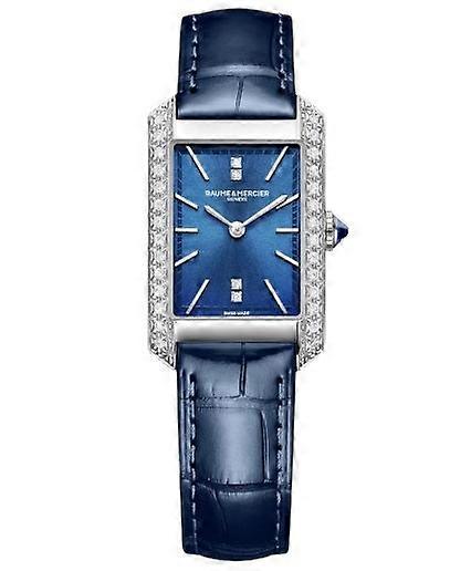Baume & Mercier Hampton Moa10709 Women's Quartz Watch - 35mm Stainless Steel Case, Blue Dial, Diamond-set Bezel, Blue Alligator Strap