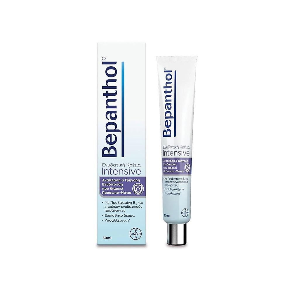 intensive and long-lasting moisturisation of the skinIdeal for intensive daily moisturisationreinforces skin hydration and preserves it all day longprotects from water loss and drynessquickly absorbedThe skin regains its resilience and velvety softnessBEPANTHOL BAYER INTENSIVE Face-Eye Cream for dry & sensitive skin.Bepanthol Intensive Face-Eye Cream promises intensive and long-lasting moisturisation of the skin. Ideal for intensive daily moisturisation.The formulation of Bepanthol Intensive Face-Eye Cream contains extra moisturising agents such as Provitamin B5 and Glycine, which reinforces skin hydration and preserves it all day long.Furthermore, Bepanthol Intensive Face-Eye is enriched with natural lipids.These lipids protect from water loss and dryness.They maintain skin elasticity, reinforce the lipidic barrier and replenish substantially skin's natural shield. Bepanthol Intensive Face-Eye Cream gives a pleasant feeling and is quickly absorbed, without leaving any trace of grease on the skin.The skin regains its resilience and velvety softness.With provitamin B5 and extra moisturisers.Non-comedogenic.Dermatologically and opthalmologically tested.Hypoallergenic.Fragrance free.Colour free.Preservatives/Parabens free.Silicone free.