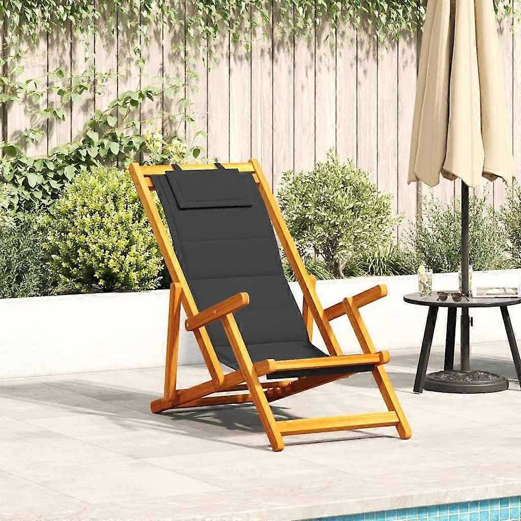 Strandstuhl mit Armlehnen Klappbar Schwarz Akazie Textilene