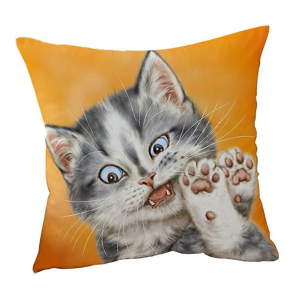 Beautiful Cats Drawings Grey Kitten over Orange Cushion Cover