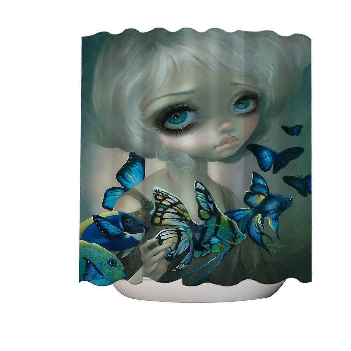 Beautiful Girl and the Blue Fish Butterflies Shower Curtain