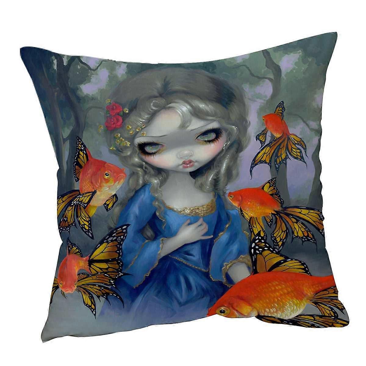 Beautiful Girl and the Goldfish Butterflies Cushion Cover
