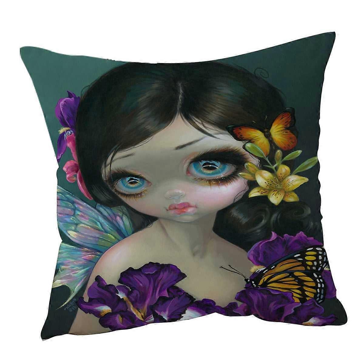 Beautiful Girl Fairy with Iris Enchantment Flowers Cushion Cover