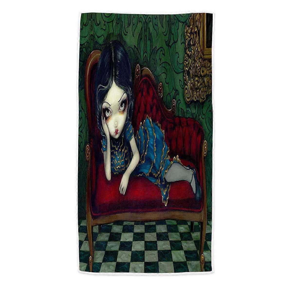 Beautiful Gothic Girl Reclining on the Scarlet Sofa Microfiber Beach Towel
