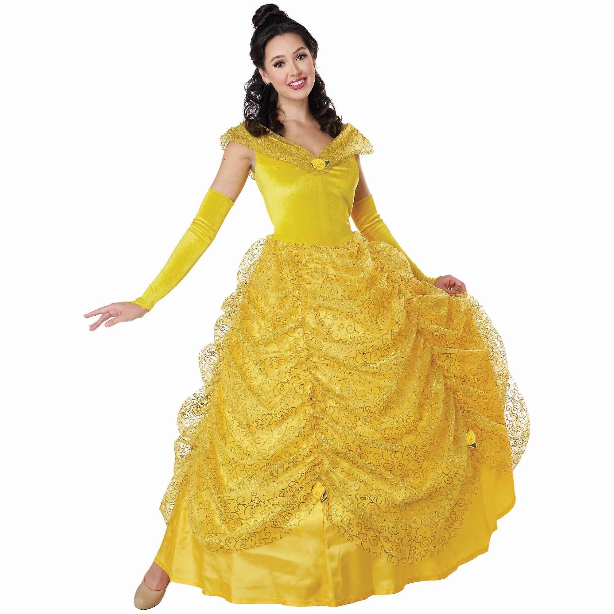 Beauty Deluxe Ball Gown Princess Belle Story Book Week Adult Womens Costume