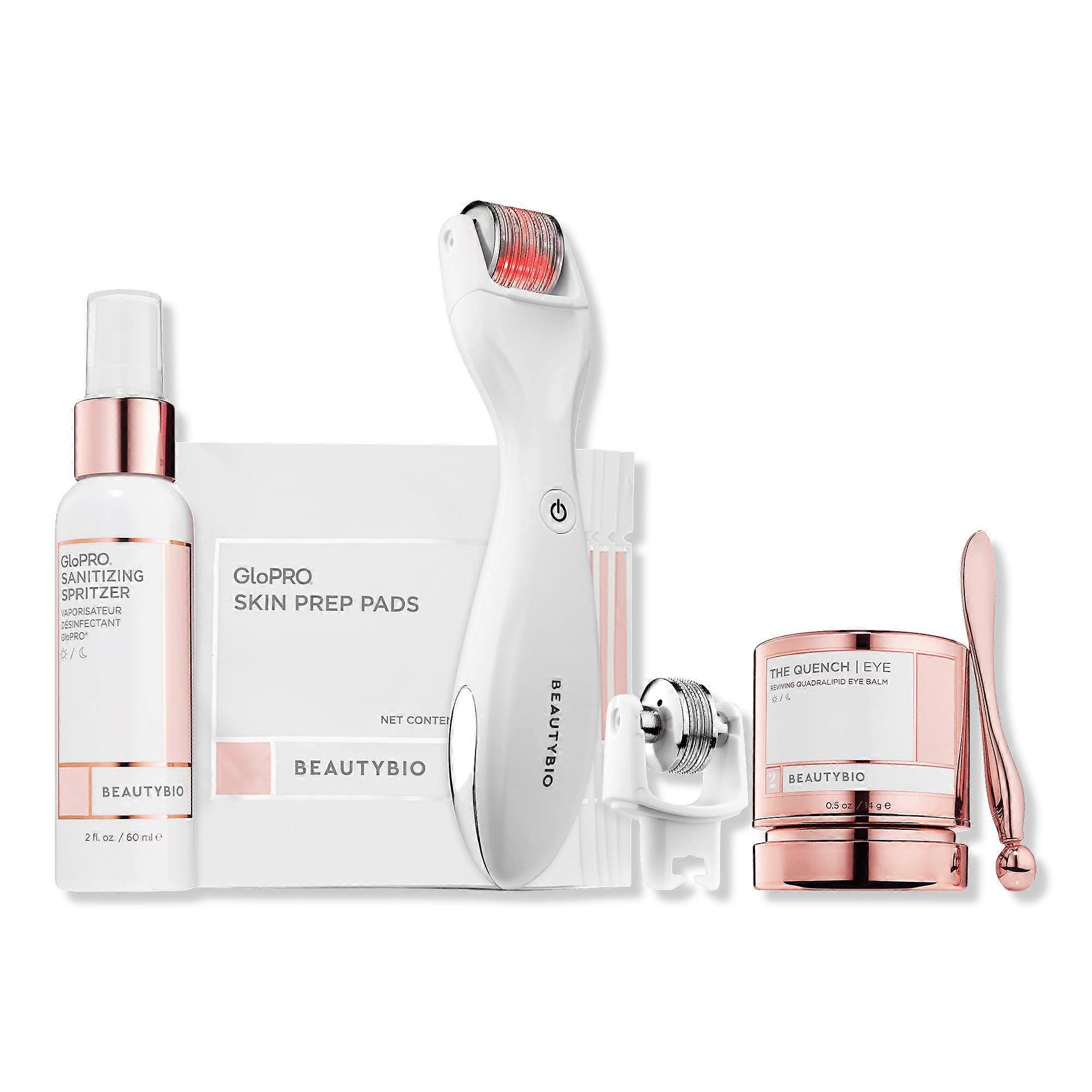 BeautyBio's Eye Want It All Face + Eye Rejuvenation Set with their best-selling GloPRO FACE & EYE Attachments plus The Quench Brightening Eye Balm to create a wide-awake complexion in just 60 seconds.
