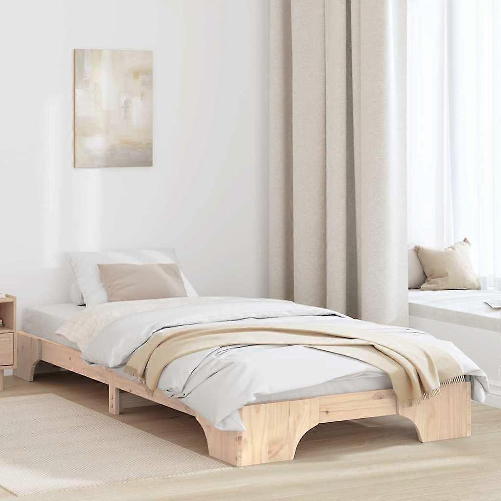 Das moderne Bettgestell fügt jedem Schlafzimmer stilvolle und dezente Eleganz hinzu. Aus massivem Kiefernholz gefertigt, bietet es klare Linien und praktische Einfachheit, ideal für zeitgenössische Inneneinrichtungen. Die solide Konstruktion bedeutet Langlebigkeit und eine stabile Grundlage für erholsame Nächte, sowie ein echtes Statement in deinem Schlafzimmer. Der Look passt zu vielen Schlafzimmerstilen und bietet die Vielseitigkeit und den zeitlosen Charme, wo Komfort und Modernität perfekt zusammenkommen, in einem kompakten Format, das sich für Frühling oder Winter gut eignet. Massivholz Kiefer: Erlebe die coole Kombination aus Stärke und Schönheit mit unserem modernen Bettgestell, das komplett aus hochwertigem massivem Kiefernholz besteht. Das Material sorgt dafür, dass das Bett stabil bleibt und der täglichen Nutzung standhält, während es eine warme, natürliche Ausstrahlung hat. Fester Lattenrost: Mit einem festen Lattenrost für robuste Unterstützung sorgt dieses Feature für Stabilität und passt zu verschiedenen Matratzenarten. Die starren Latten helfen, das Gewicht gleichmäßig zu verteilen und verbessern den Schlafkomfort. Außerdem sorgt die Belüftung für einen frischen Schlafbereich. Veredelte Rückseite: Die Rückseite dieses Bettgestells ist hübsch und fertiggestellt, sodass es von allen Seiten gut aussieht. Das ist wichtig für offene Grundrisse oder wenn das Bett frei im Raum steht. Einfache Montage: Der Aufbau ist schnell und unkompliziert und braucht nur zwei Personen und einen Schraubendreher. Jedes Teil ist gut verarbeitet, um eine effiziente Montage zu ermöglichen, und du hast das Gefühl, ein Möbelstück selbst gebaut zu haben. Pflegeleicht: Halte dein Bettgestell sauber, indem du es einfach mit einem feuchten Tuch abwischst, um Staub oder Flecken zu entfernen. Diese einfache Pflege hilft, das makellose Aussehen ohne großen Aufwand zu bewahren und die Qualität und Schönheit des Bettes über die Jahre zu erhalten. Farbe: NaturMaterial: Massives KiefernholzRahmenmaterial: Massivholz KieferGesamtabmessungen: 197 x 97 x 17 cm (L x B x H)Matratzengröße: Kurzes Einzelbett (90 cm x 190 cm oder 35 x 75 )Max. Gewicht: 100 kgMit Lattenrost: JaMaximale Personenzahl: 1LanglebigBohöhe: 31 cmKompatible Matratze Größe: 90 x 190 cm(B x L)Lieferumfang:1 x Bettgestell