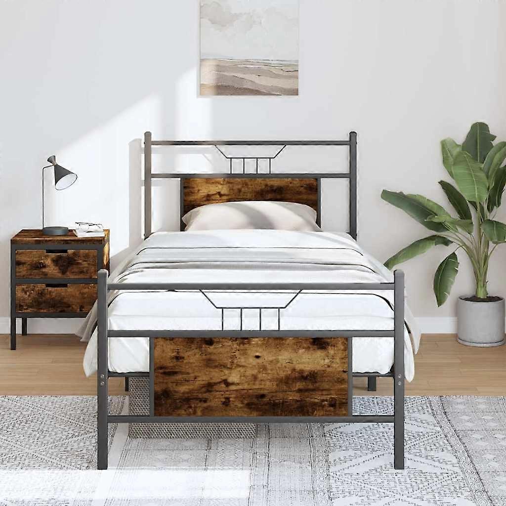 Farbe: RäuchereicheMaterial: Holzwerkstoff und StahlGesamtabmessungen: 196 x 96 x 91,5 cm (L x B x H)Höhe unter dem Bett: 27 cmPassende Matratzengröße: 90 x 190 cm (B x L) (Matratze ist nicht im Lieferumfang enthalten)Mit Kopfteil und FußteilZusammenbau erforderlich: Ja
