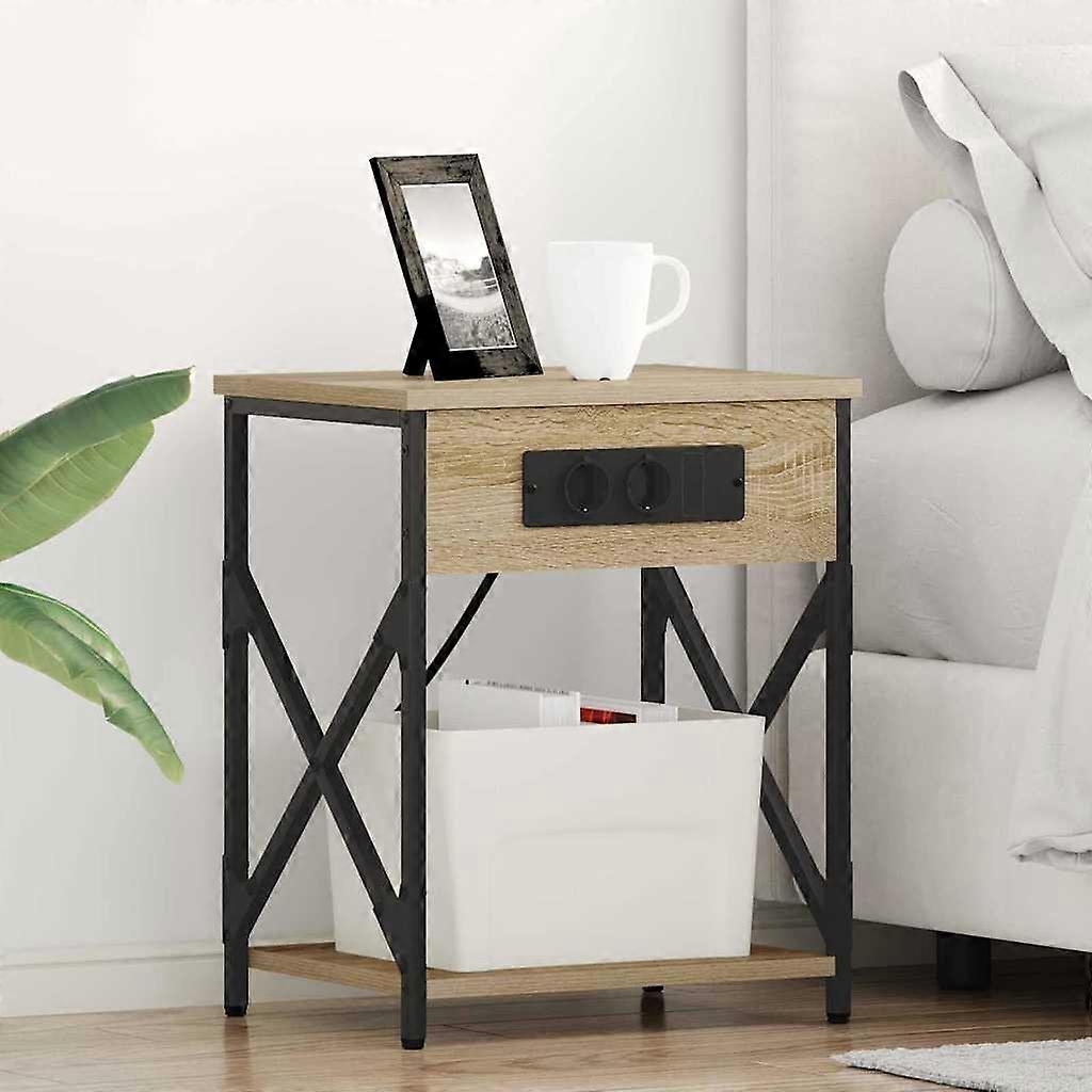 Farbe: Sonoma-EicheMaterial: HolzwerkstoffGesamtabmessungen: 41 x 31 x 51 cm (L x B x H)mit 2 Brett-RegaleStauraumMit LadestationStromquelle: SteckerMax. Gewicht: 150 kgMontage erforderlich: Ja