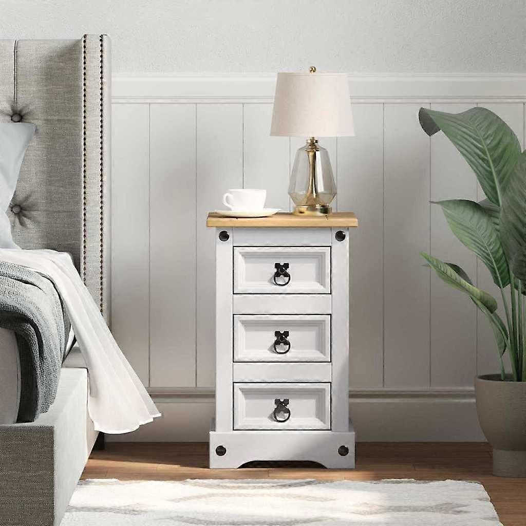Nachttisch Weiß 35 x 32,5 x 58 cm Massives Kiefernholz