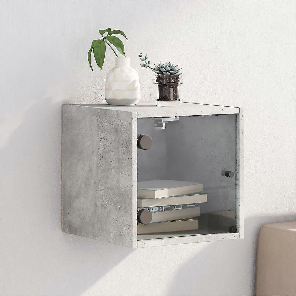 Nachttisch mit Glastür Betongrau 35x37x35 cm