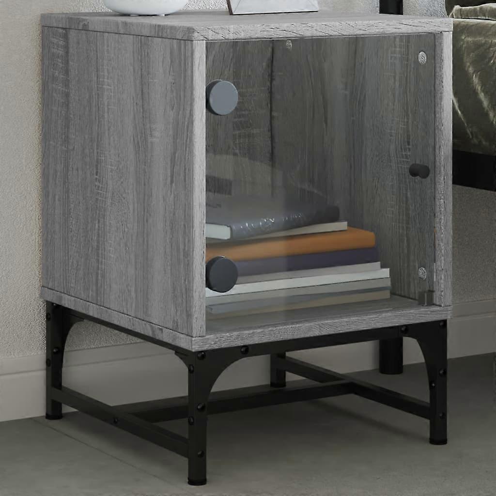 Nachttisch mit Glastür Grau Sonoma 35x37x50 cm