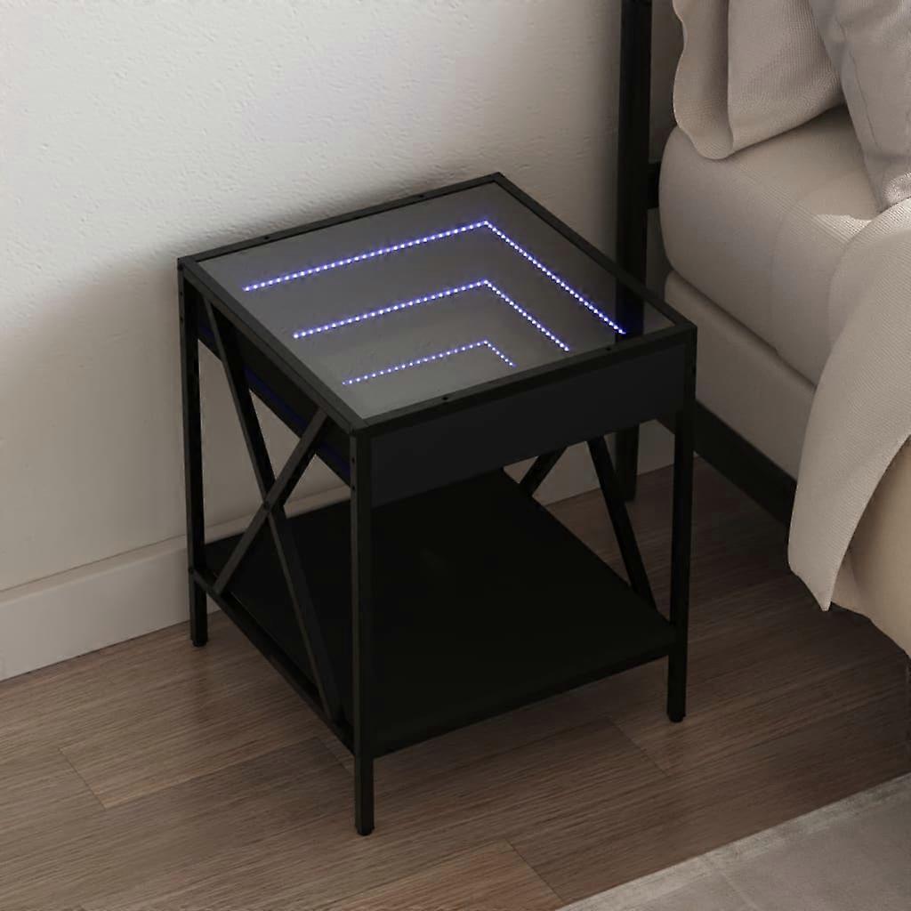 Nachttisch mit Infinity-LED Schwarz 40x40x49 cm