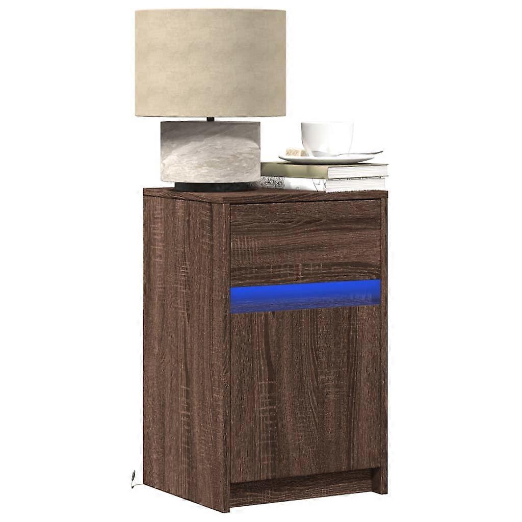 Nachttisch mit LED-Leuchten Braun Eichen-Optik Holzwerkstoff