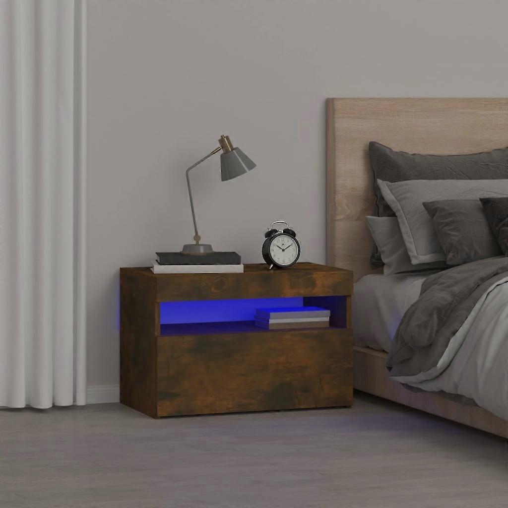 Nachttisch mit LED-Leuchten Räuchereiche 60x35x40 cm