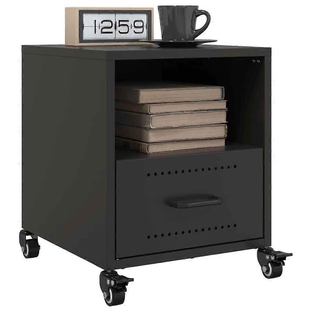 Mit ihrem stilvollen Design sind diese Nachttische eine zeitlose Ergänzung zu deiner Inneneinrichtung. Stabiles Material: Das Gestell des Nachttisches besteht aus kaltgewalztem Stahl. Kaltgewalzter Stahl ist eine Art kohlenstoffarmer Stahl, der im ?Kaltwalzverfahren? hergestellt und bei nahezu normalen Raumtemperaturen verarbeitet wird. Kaltgewalzter Stahl besitzt eine glattere Oberfläche, eine höhere Festigkeit und lässt sich präziser verarbeiten.Reichlich Stauraum: Dieser Schrank bietet praktischen Stauraum, um deine Zeitschriften, Bücher, Fernbedienungen und andere kleine Gegenstände gut geordnet und in Reichweite aufzubewahren.Pflegeleicht: Der Tisch lässt sich mit einem feuchten Tuch leicht reinigen und erfordert wenig Pflege.Einfaches Umstellen: Dieser Beistelltisch verfügt über 4 Rollen und lässt sich daher flexibel und mühelos umher verschieben.Praktischer Griff: Der Nachtschrank ist mit einem Griff ausgestattet, der das Öffnen und Schließen des Schranks erleichtert und gleichzeitig für zusätzliche Schönheit sorgt. Farbe: SchwarzMaterial: Kaltgewalzter StahlAbmessungen: 36 x 39 x 43,5 cm (L x B x H)1 SchubladeMit 1 FachZusammenbau erforderlich: JaLieferung umfasst:2 x Nachttisch