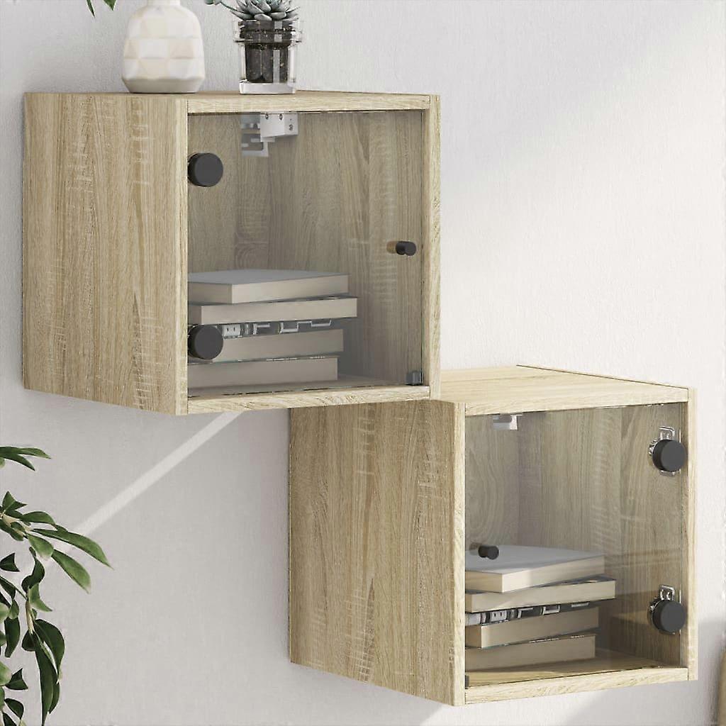 Nachttische mit Glastüren 2 Stk. Sonoma-Eiche 35x37x35 cm
