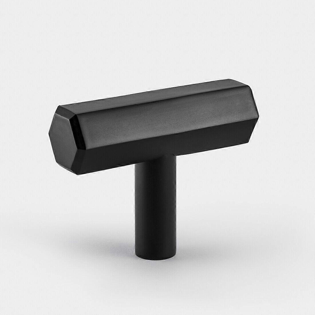 A black beehive T bar handle in an eco friendly design.A highly durable handle ideal for modern homes, particularly kitchens, bedrooms, and bathrooms.Clear protective lacquer to prevent tarnishing.Wipe clean with warm water and a soft cloth. Avoid abrasive towels, sponges, cleaning sprays, bleach and hand sanitizers.PRICE PER KNOBSuitable for all Appliance doors.Sold individuallySizes & Specification:Length: 49.7mmDiameter: 12.6mmProtrusion from door: 36mmScrews:Included - 1 x 30mm screws