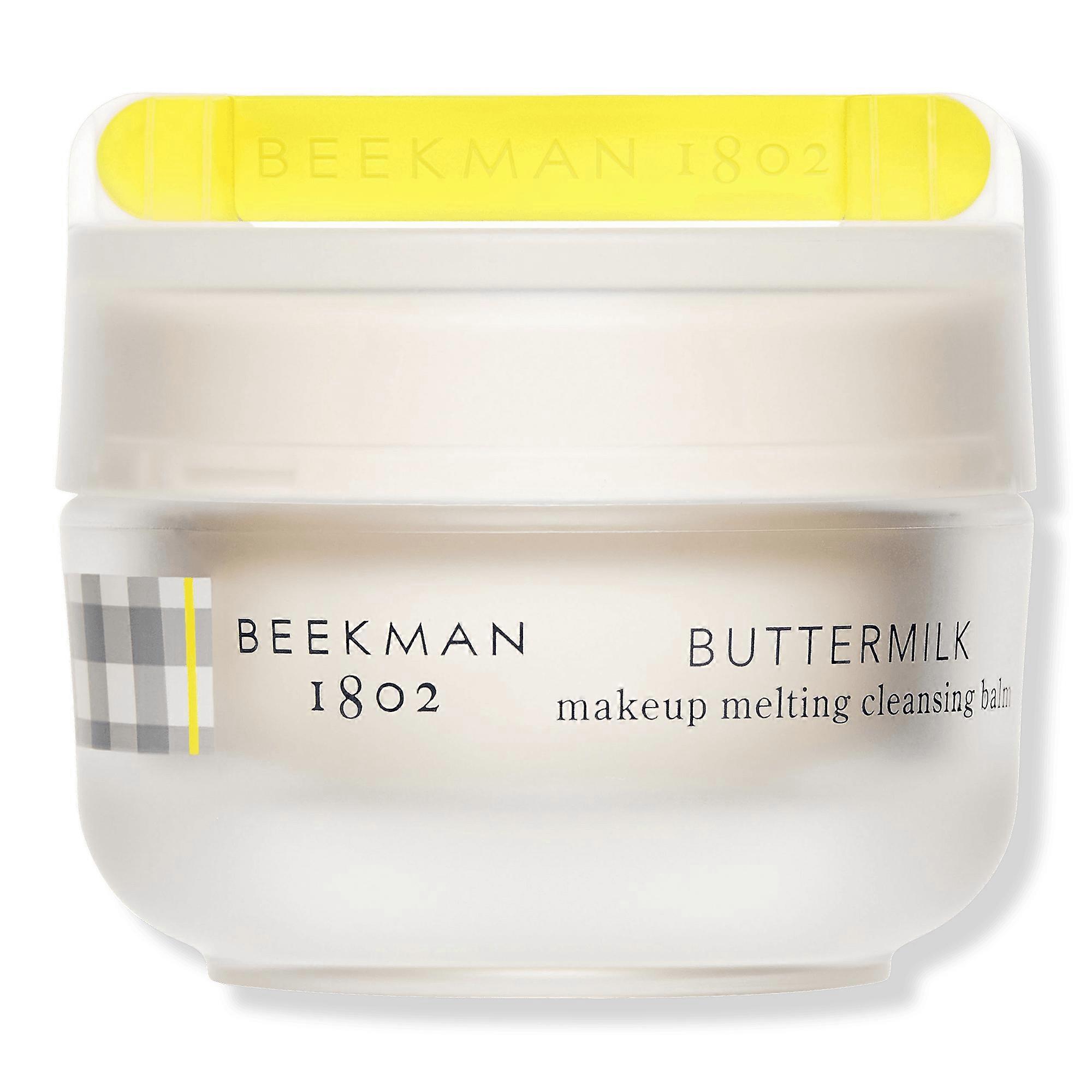 Don't let the down-home name of this cleanser fool you: it's an incredibly powerful formula. On contact with water, the Beekman 1802 Buttermilk Makeup Melting Cleansing Balm transforms from a buttery balm into a deep cleansing milk that gently melts all traces of dirt, makeup & sunscreen. Benefits Deep cleanses without irritants or sensitizersEffective enough to remove water-resistant makeupLeaves skin instantly nourished for a healthy complexionButtermilk is certified microbiome-friendlySafe for sensitive skinAllergy testedNon-irritating Key Ingredients Sunflower Butter: a natural plant wax melts makeup, dirt and, grime and easily rinses away to give your skin a clean slate.Goat Milk & Probiotics: This proprietary blend of goat milk and probiotics deeply nourish and balance for healthy, dewy, radiant complexion. It's like yogurt for your sensitive skin Active Botanical Blend: comfrey, blue thistle, chamomile, cucumber, and aloe help support, nourish, and hydrate skin's moisture barrier. Suggested Use: Step1: Start with dry skin. Twist off the cap of our little milk pail jar and use the yellow spatula to scoop out product. Step 2: On dry skin, use dry fingertips to massage Buttermilk over face and eyes. Step 3: Add water to activate, then rinse well with warm water and pat dry (may also be removed with a soft, damp cloth). Usage: Use every evening on dry skin to melt makeup. Suitable for all skin types. UPC: 000002569231 Weight: 0.59 lbs