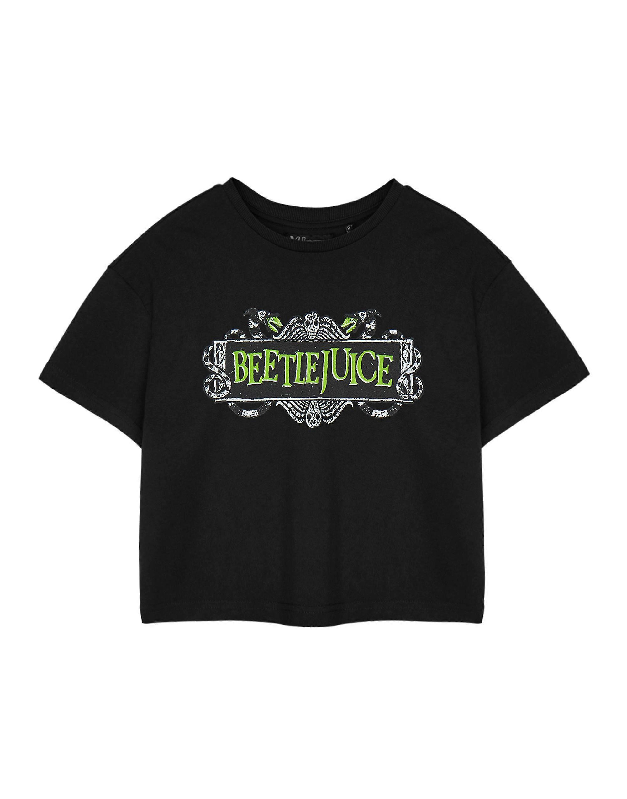 Beetlejuice Womens Cropped Short Sleeved T-Shirt Black Beetlejuice Logo Crop Top
