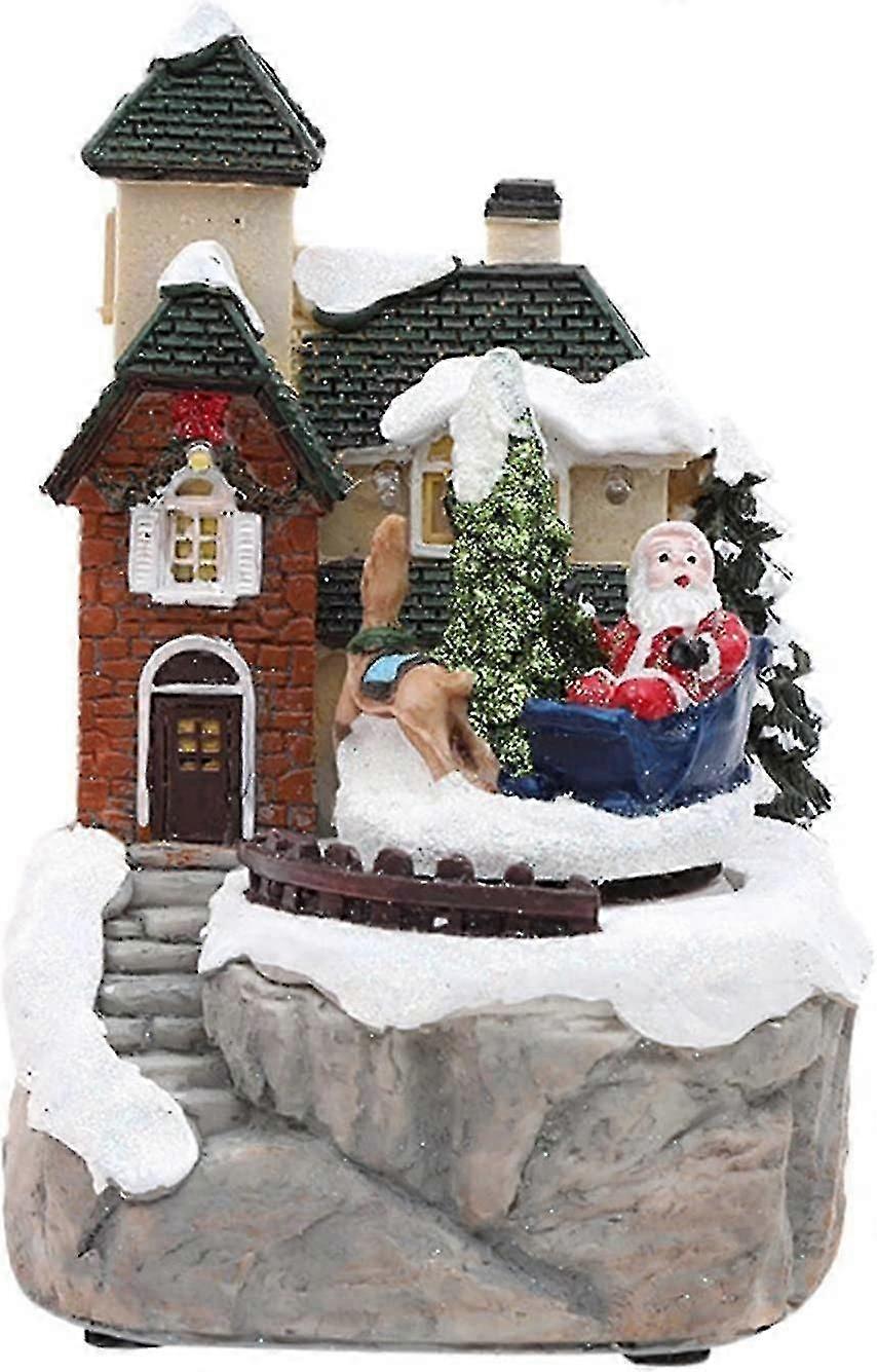 Beibei - Christmas Village House With Led Light And Music, Christmas Decoration Snow House With Santa Luminous Christmas Ornament, Festive Christmas