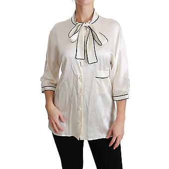 Beige 3/4 Sleeve Shirt Blouse Silk Top