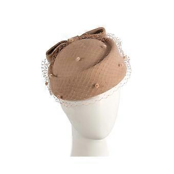 Beige felt pillbox hat with face veil by Max Alexander J431BE