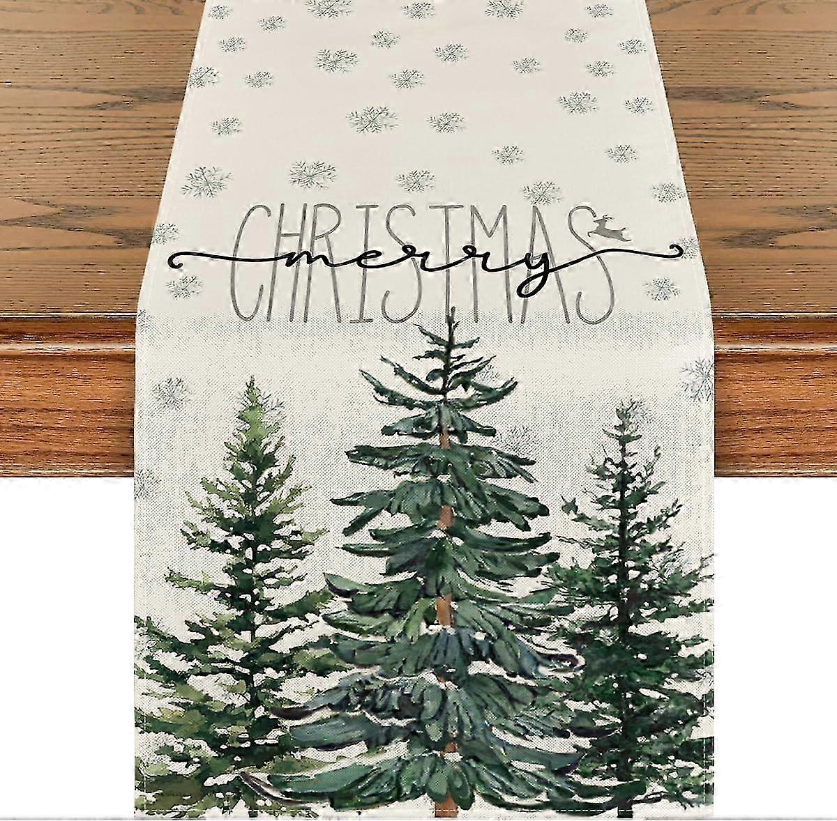 Beige Pine Tree Snowflake Merry Christmas Table Runner, Seasonal Winter Xmas Holiday Kitchen Dining Table Decoration for Home Party Decor 13 x 72 Inch