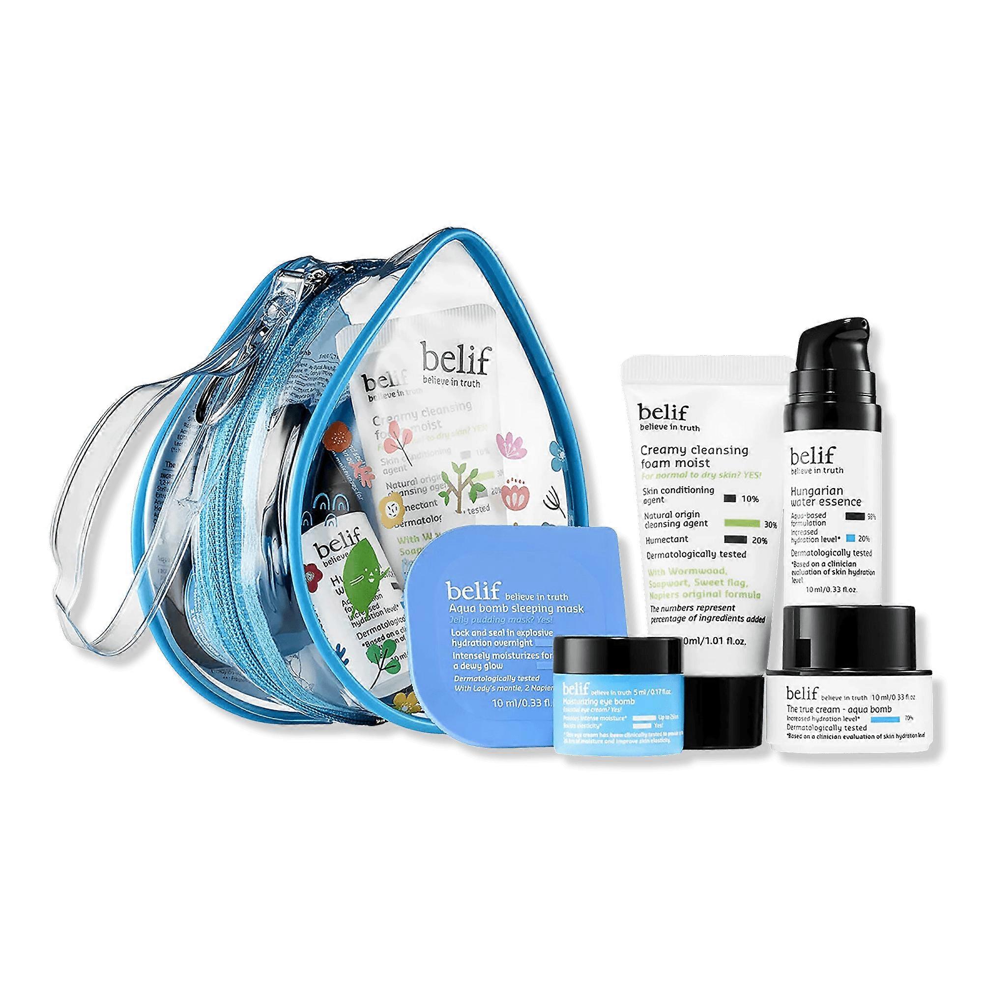 Discover hydrated, radiant skin with the belif Bestselling Hydrators-On-The-Go Kit. This compact kit features a range of skincare essentials designed to nourish and refresh your skin. Suitable for normal, oily, combination, and sensitive skin types, it addresses dryness, dullness, uneven texture, and elasticity concerns.