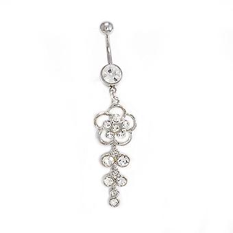 Belly button ring 14g flower cascade navel ring dangle clear cz gem jewelry 10mm