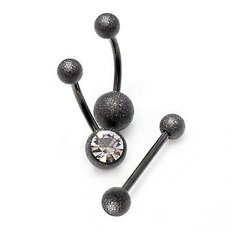 Belly button ring and tongue ring barbell package of 3 sand finish cz jewelry