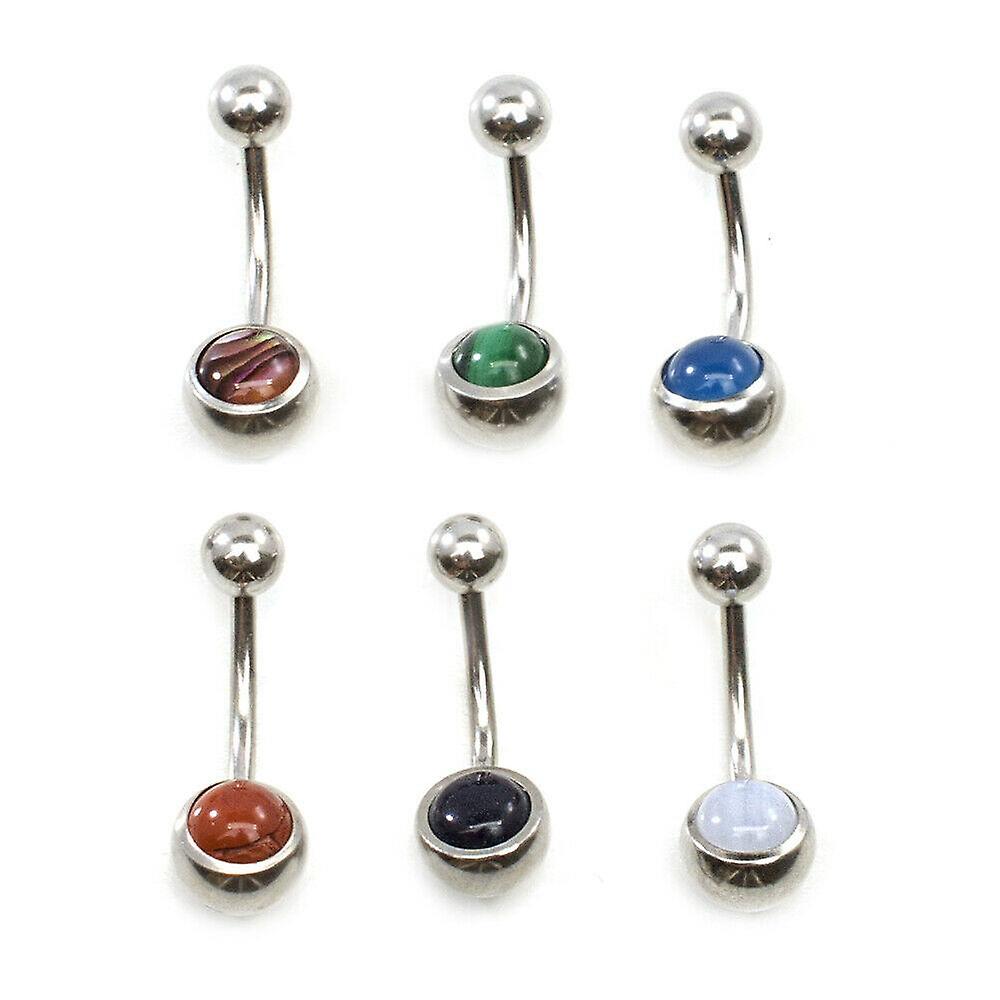 Belly button ring pack of 6 with colorful semi precious stone surgical steel 14g
