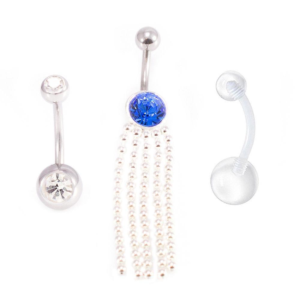 Belly button ring package of 3 navel ring. two with cz gems and a retainer. 14g