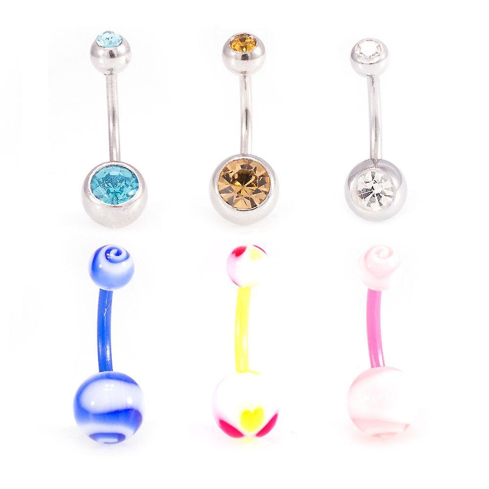 Belly button ring package of 6 navel ring 3 surgical steel with cz and 3 flexi