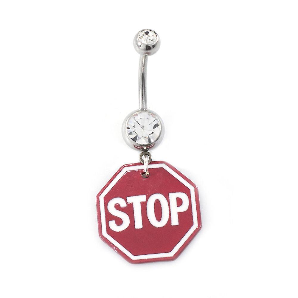 Belly button ring stop sign with cubic zirconia 14g