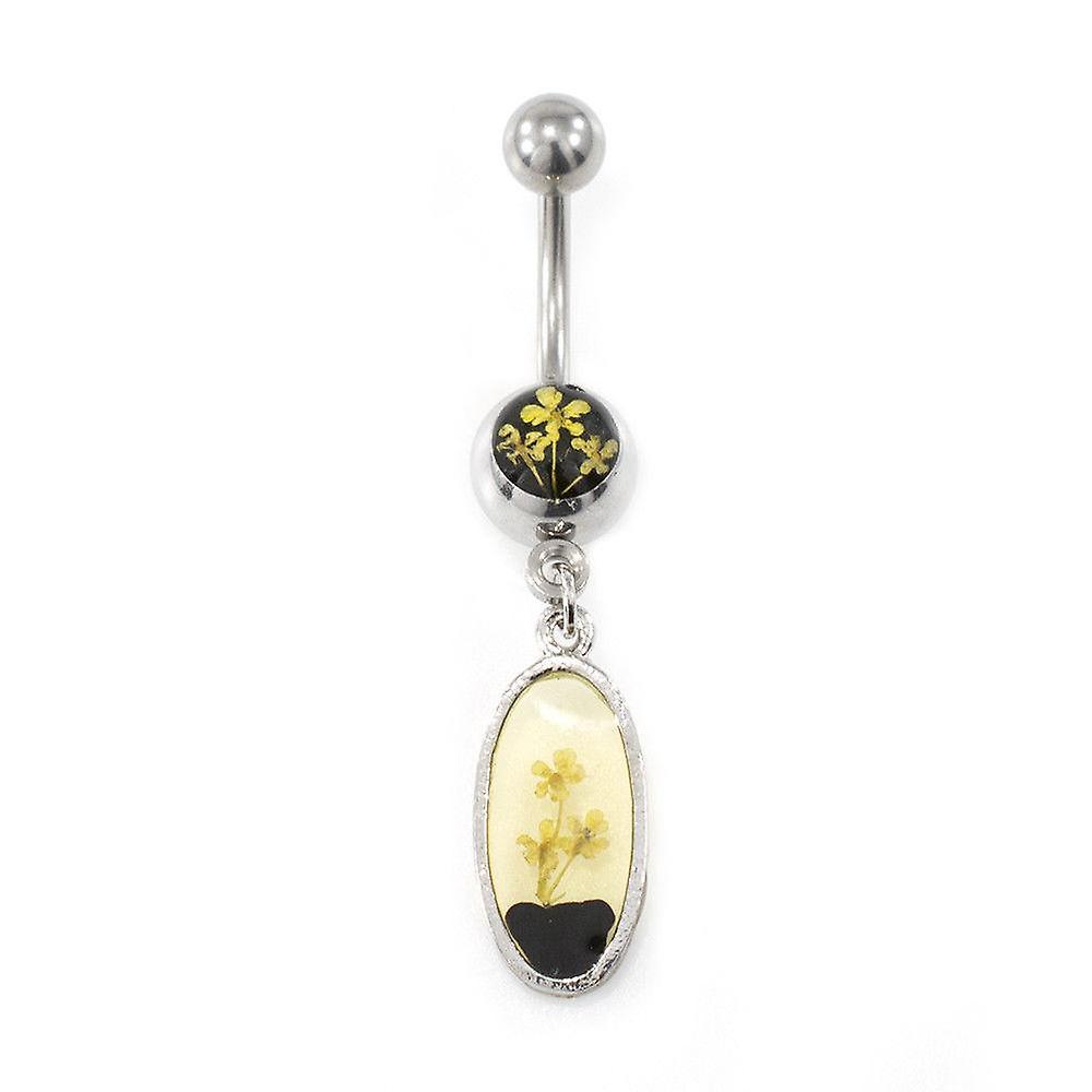 Belly button ring with dry flower dangle design 14g