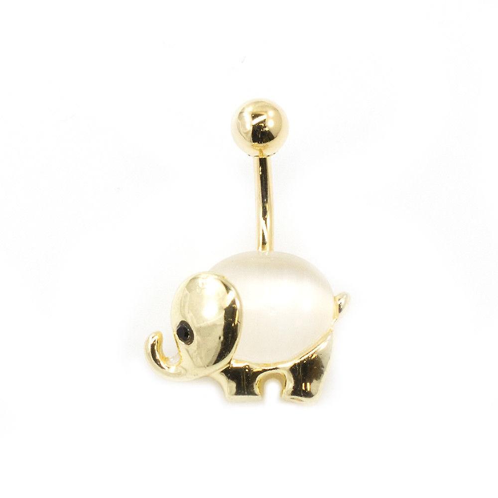 Belly button ring with elephant design and a big opalite stone 14g