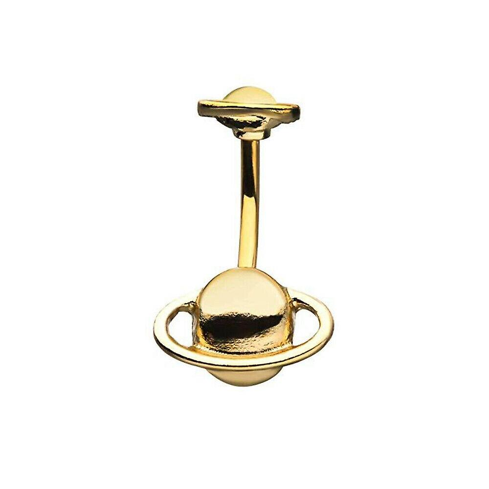 Belly button ring with gold plated orbit fixed design 14ga surgical steel