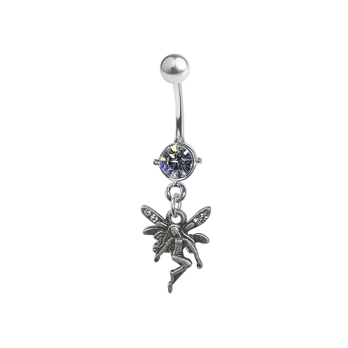 Belly navel ring dangle fairy faerie with prong setting cz gem 14g